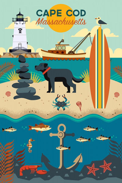 Cape Cod, Massachusetts - Geometric - Beach - Lantern Press Postcard