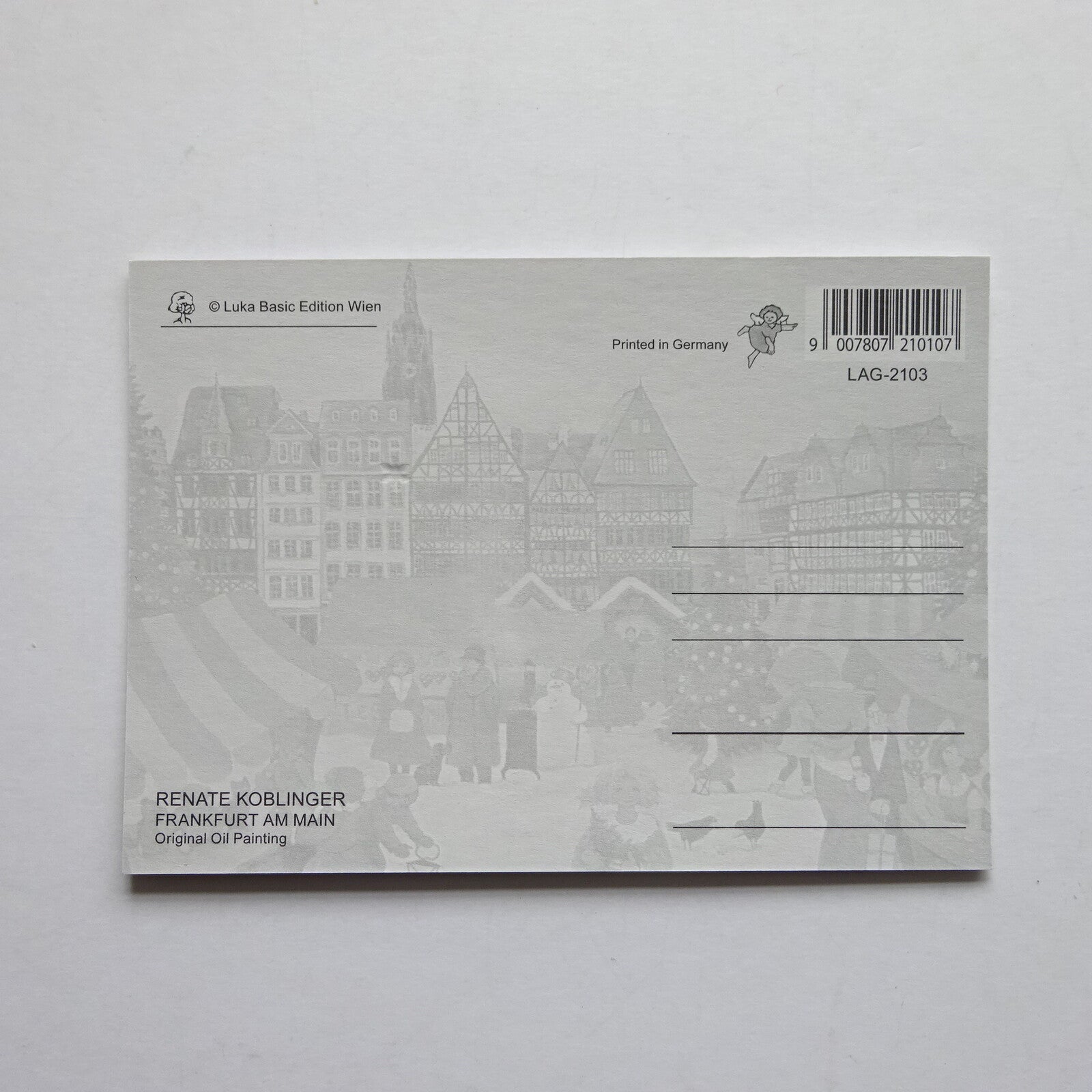 Luka Basic is a European postcard brand known for its warm and delicate artistic style. This Austria Luka Basic Christmas Postcard is painted by Austrian artist Renate Koblinger, often described as a “poet with a paintbrush.” The card features gold foil accents, adding a festive and elegant Christmas touch.