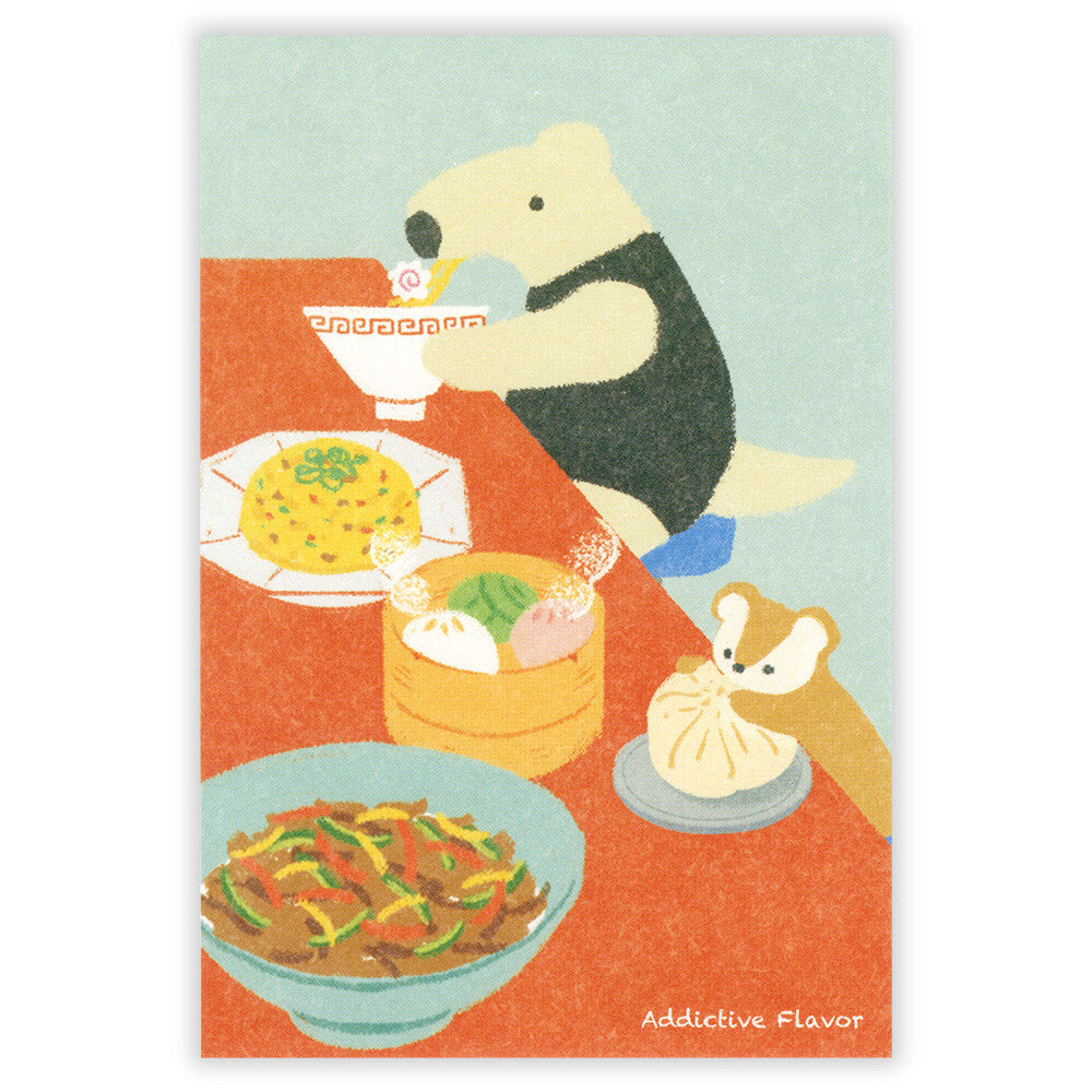 A charming postcard series featuring animals having fun with their favorite trends.