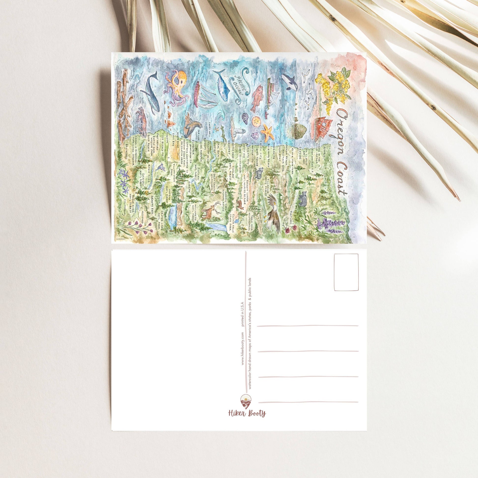 Oregon Coast Map Postcard Watercolor Hand Drawn It doesn’t get much more coastal than this region. And thanks to a pioneering beach bill, all 363 miles of Oregon’s coastline remain free and public.