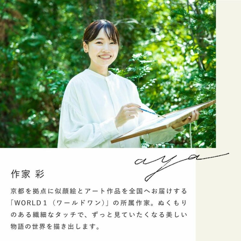 Aya is a Kyoto-based illustrator known for her gentle and detailed style. Her work often evokes warmth and emotion, blending realism with a soft storytelling atmosphere. Through her affiliation with WORLD1, she shares her art nationwide, creating portraits and original pieces that capture the beauty of everyday moments.