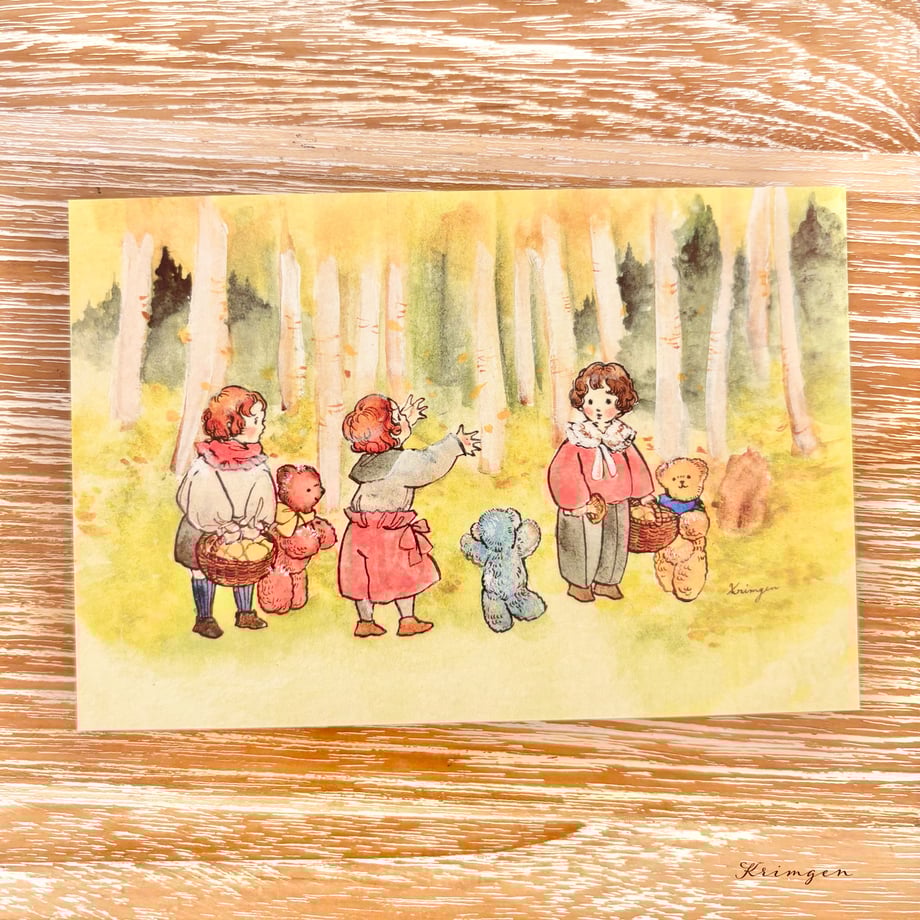 Three Kids in Autumn Woods - Krimgen postcard